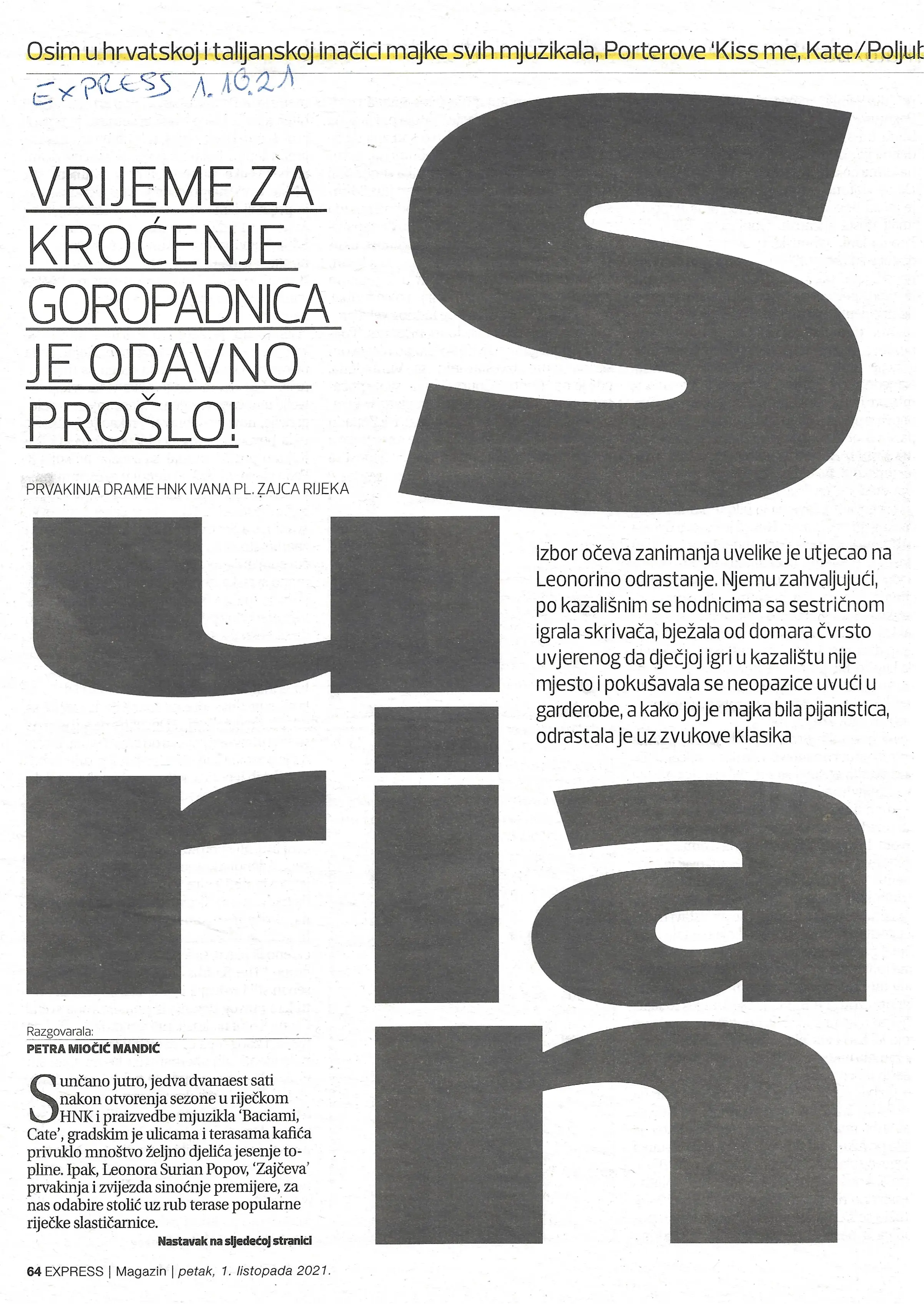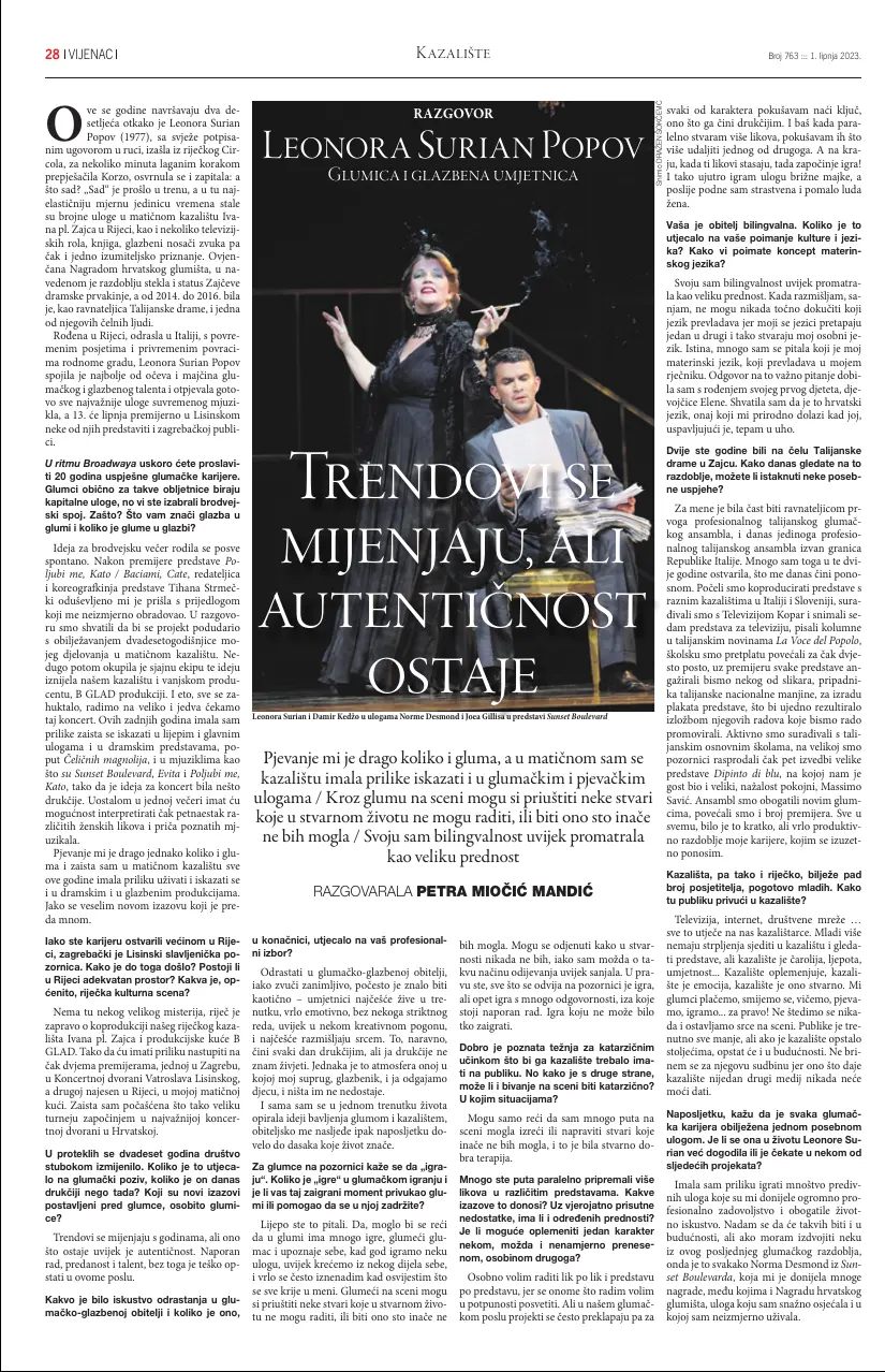 Hrvatsko Glumište- Intervju: Leonora Surian Popov